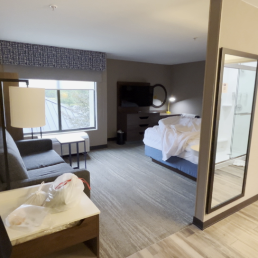 3D pre-training from VGGT improves Novel View Synthesis quality due to better geometry estimation, especially in the goreground regions. Explore the scenes below by clicking on the thumbnails.